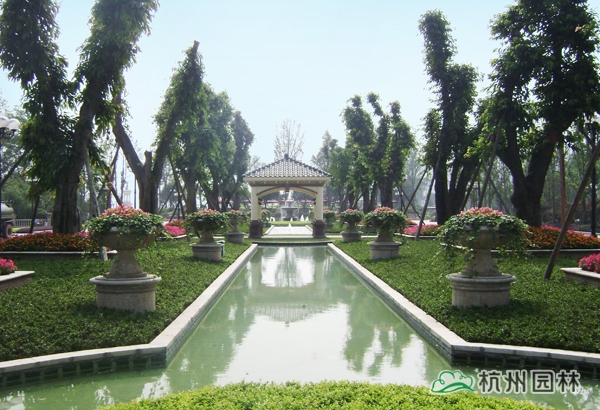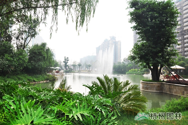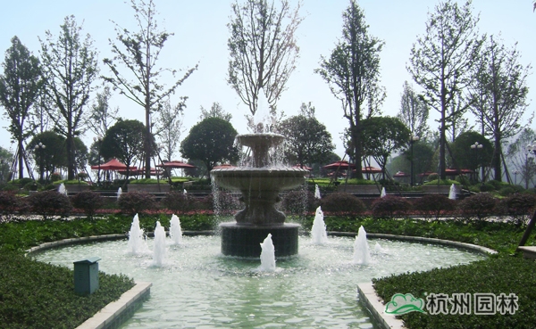 該工程以豪闊手筆打造,近10000平方米的皇家疊水園林與逾8000平方米壯闊雙湖傾城碧波勝景,游走其間,各式園林小品穿插點綴其中,園中大量運用噴泉、雕塑、花壇、樹叢等精心布置景觀小品,展現令人贊嘆的皇家美景,湖岸旁精心布置的疊水景觀、親水平臺、噴水雕塑、親水棧道之間,以花卉、景觀樹完美銜接,景觀錯落有致,塑造出豐富的層次,打造出步移景異的極致景觀效果。