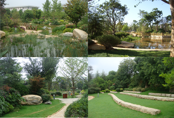 昆明市市級黨政機關辦公用房搬遷建設項目區(qū)內(nèi)景觀綠化工程(第三標段),地處昆明市呈貢縣吳家營鄉(xiāng)小尖山西北附近,總面積101800㎡,工程包括硬質(zhì)景觀、綠化種植和水電工程,為大型綜合性園林景觀工程。綠軸D組團內(nèi)的人工湖的施工,清香木、黃連木和山楂等特型樹的應用,自然石汀步、老石板園路等生態(tài)型游步道的鋪裝,成為工程中最大的特色和亮點。漫步在林蔭小道上,呼吸著清新的空氣,聆聽著涓涓的流水聲,一幅綠意盎然、閑適愜意的生動畫卷帶給人們更多關于自然的完美體驗!