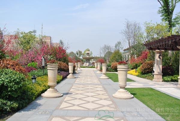 中國(guó)鐵建?國(guó)際城(杭州)示范區(qū)園林綠化工程位于杭州城北石祥路與蔡馬河交匯處,面積相當(dāng)于三個(gè)足球場(chǎng)大小,景觀(guān)全方位采用規(guī)則式與自然式融合的維多利亞園林風(fēng)格,整個(gè)樣板區(qū)里,低矮的植物構(gòu)筑、種類(lèi)豐富的四季花壇堆砌、自然風(fēng)格的花境布局、工藝繁復(fù)的石材雕刻、優(yōu)雅的雕花鐵藝運(yùn)用、材料豐富的硬質(zhì)鋪裝、蒼勁古樸的大樹(shù)……無(wú)不各具特色,自然和諧地融為一體,純凈、自然中透露著大氣、華貴,將維多利亞皇家園林景觀(guān)的特征表現(xiàn)得淋漓盡致,引發(fā)了人們對(duì)未來(lái)?xiàng)又鼐坝^(guān)的無(wú)限憧憬,成為住宅景觀(guān)的優(yōu)秀典范。
